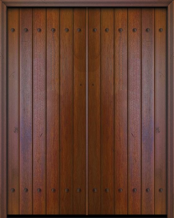 WDMA 72x96 Door (6ft by 8ft) Exterior Swing Mahogany 36in x 96in Double Square Top Plank Portobello Door with Clavos