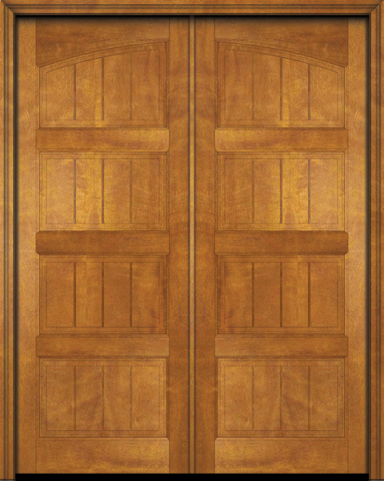 WDMA 68x80 Door (5ft8in by 6ft8in) Interior Swing Mahogany 4 Panel V-Grooved Plank Rustic-Old World Exterior or Double Door