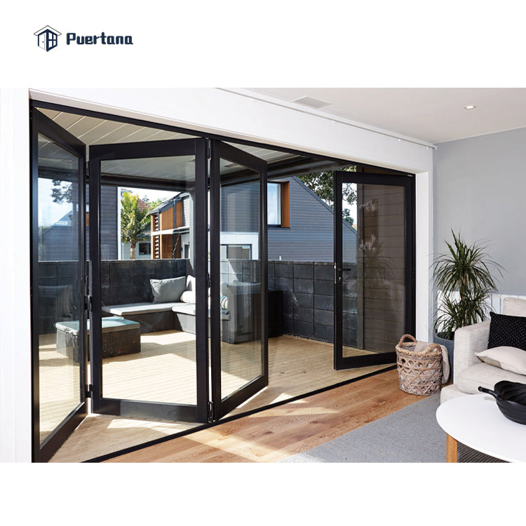 Product Description Product name: Aluminium glass folding door Hardware: Germany brand;China top brand Glass: Double/triple tempered glass U-value: 1.5-3.0 Color: Black, grey, brown Package: Foam/Wood shelf/Wood carton Size: 10'W*8'H; customized Delievey time: 20-25 working days Details Images Heavy-duty rollers to bear the weight of the door, making sure the door...