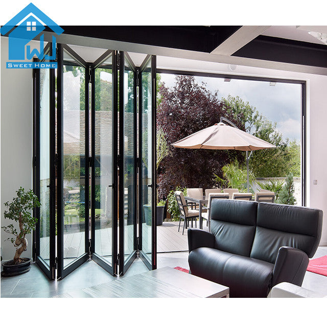 Product Description Name: aluminum bifolding doors Opening way: folding Frame: Aluminum:6063-T5 normal or thermal break , thickness: 1.2mm ,1.4mm ,1.6mm ,1.8mm ,2.0mm Powder coating .PVDF,And Anodizing PVC/UPVC profile Glass: single, low-e double . triple tempered glass Hardware: Chinese brand ,Germany brand ,European brand , Australia brand Package: assemble whole set...