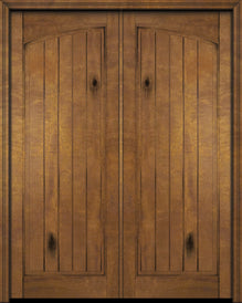 WDMA 68x84 Door (5ft8in by 7ft) Exterior Barn Mahogany 2 Panel Arch Top V-Grooved Plank Rustic-Old World or Interior Double Door