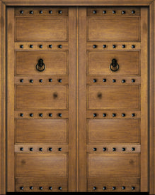 WDMA 68x78 Door (5ft8in by 6ft6in) Exterior Barn Mahogany Rustic 2 Panel or Interior Double Door with Speakeasy / Straps