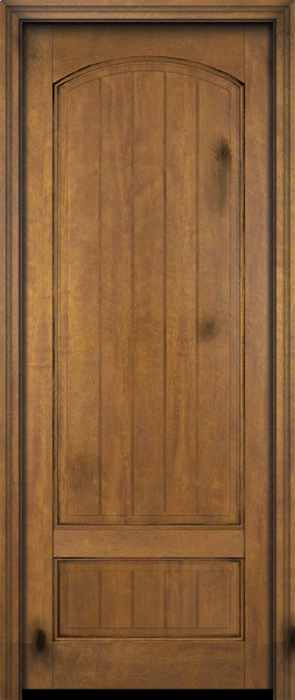 WDMA 34x78 Door (2ft10in by 6ft6in) Exterior Barn Mahogany 2 Panel Arch Top V-Grooved Plank or Interior Single Door