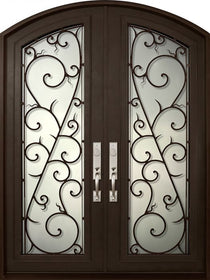 WDMA 72x96 Door (6ft by 8ft) Exterior 96in Valencia Full Lite Arch Top Double Wrought Iron Entry Door