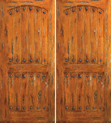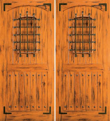 WDMA 84x80 Door (7ft by 6ft8in) Exterior Knotty Alder Double Door 2 Panel Speakeasy Door Knob