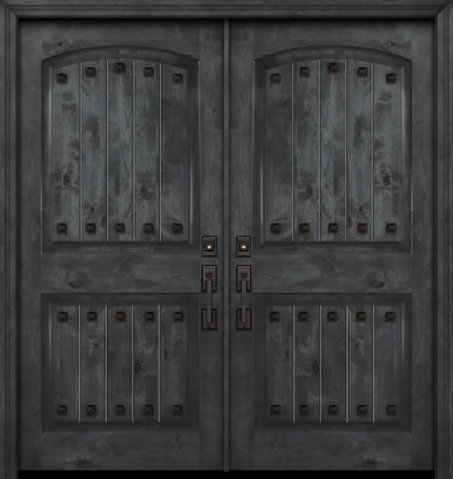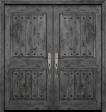WDMA 84x80 Door (7ft by 6ft8in) Exterior Knotty Alder 42in x 80in Double Arch 2 Panel V-Grooved Estancia Alder Door with Clavos