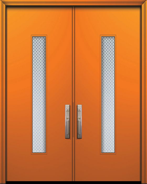 WDMA 84x96 Door (7ft by 8ft) Exterior Smooth 42in x 96in Double Malibu Solid Contemporary Door w/Metal Grid Attributes Table
