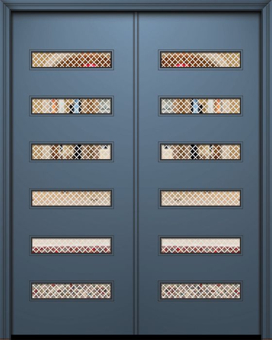 WDMA 84x96 Door (7ft by 8ft) Exterior Smooth 42in x 96in Double Beverly Solid Contemporary Door w/Metal Grid Attributes Table
