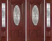 WDMA 88x80 Door (7ft4in by 6ft8in) Exterior Mahogany Oval Three Panel Double Entry Door Sidelights CD Glass