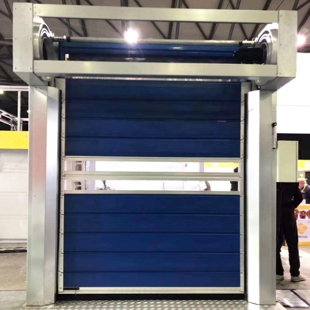 Promotion!!! Product Details What is the feature of high speed spiral door? 1) Aluminum Alloy lathes and foam inserted and viewing windows as standard 2) Emergency handle equipment for surviving 3) Given frictionless for lathes operation to longer the using life 4) Weight balance with springs and belt 5) Basically no maintenace on the whole door...