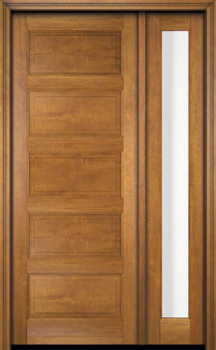 WDMA 34x78 Door (2ft10in by 6ft6in) Exterior Swing Mahogany 5 Raised Panel Solid Single Entry Door Sidelight