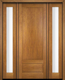 WDMA 52x96 Door (4ft4in by 8ft) Exterior Swing Mahogany 2 Raised Panel Solid Single Entry Door Sidelights