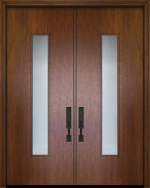 WDMA 64x96 Door (5ft4in by 8ft) Exterior Swing Mahogany Manchester Solid Panel Arched Double Door/Arch Top