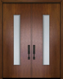 WDMA 64x96 Door (5ft4in by 8ft) Exterior Mahogany 96in Double Venice Solid Contemporary Door w/Metal Grid
