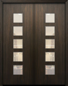 WDMA 64x96 Door (5ft4in by 8ft) Exterior Mahogany 96in Double Newport Solid Contemporary Door w/Metal Grid