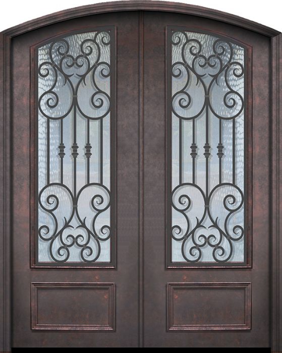 WDMA 64x96 Door (5ft4in by 8ft) Exterior 96in ThermaPlus Steel Marbella 1 Panel Arch Top Arch Lite Double Door