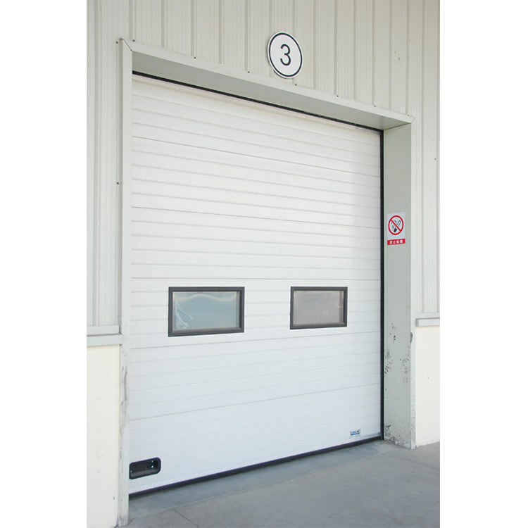 Product Description Vertical sliding door lifting industrial sectional doors model Sectional door Door panel size range Up to 10m*9m Door thickness 40mm±2 surface Polyester treatment, color is white gray, silver gray, other track Available in 2", all made of 2mm thick hot-dip steel, with standard rail, low rail high lift...