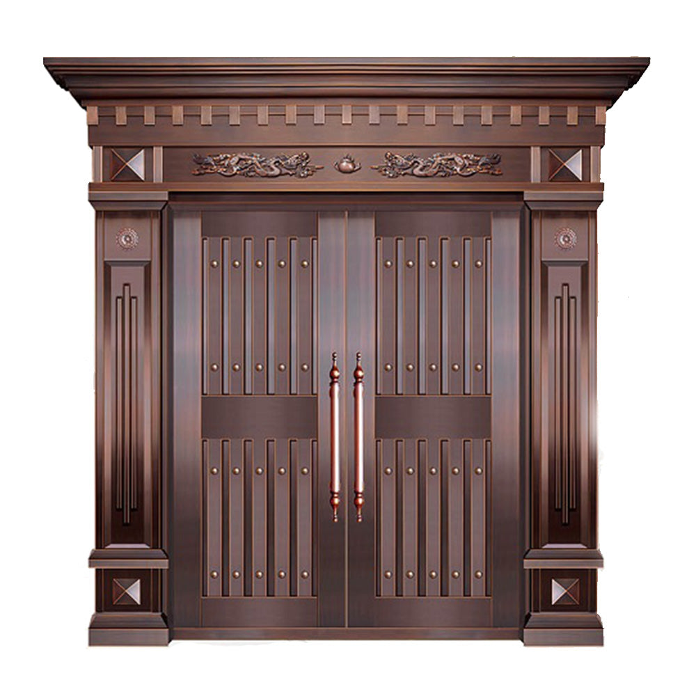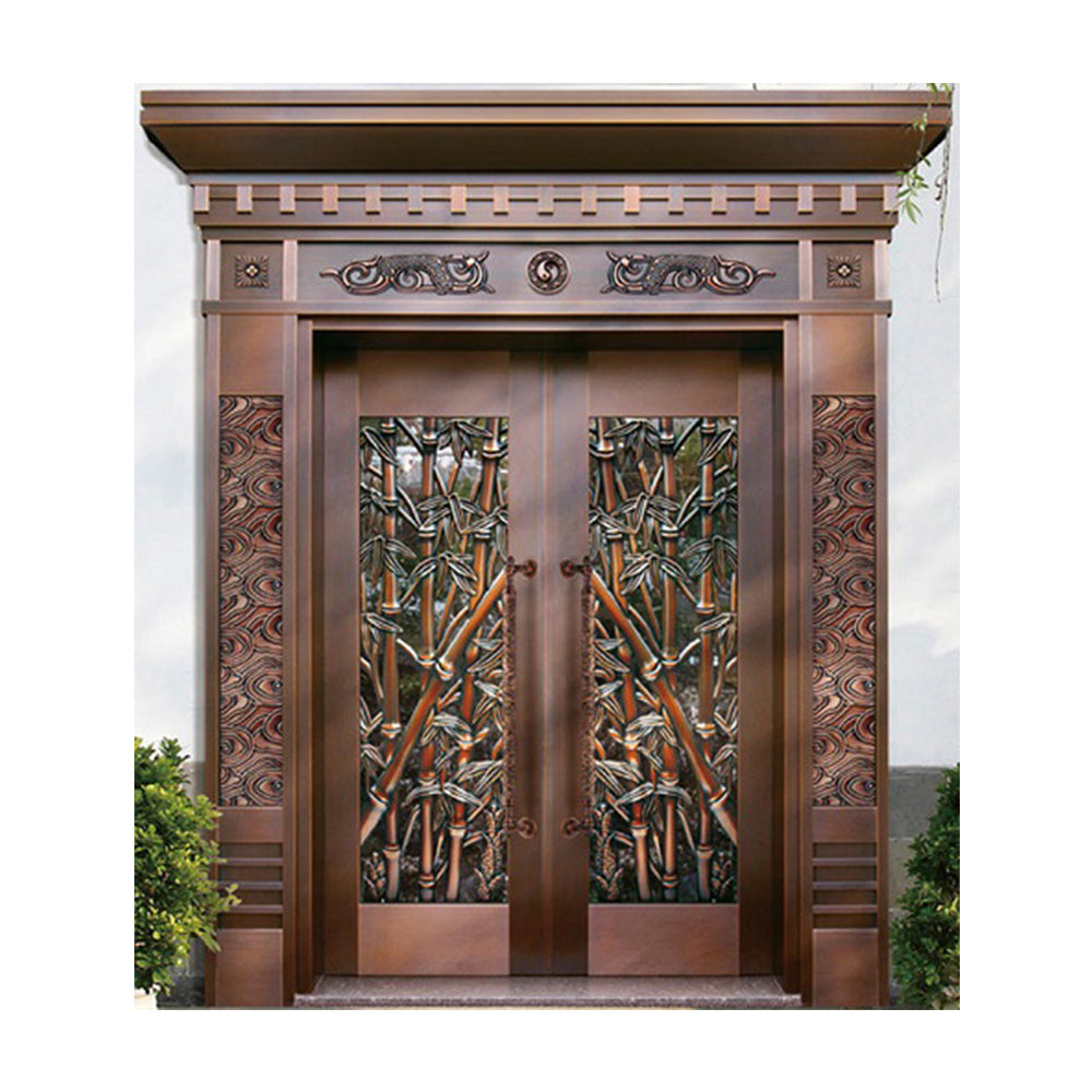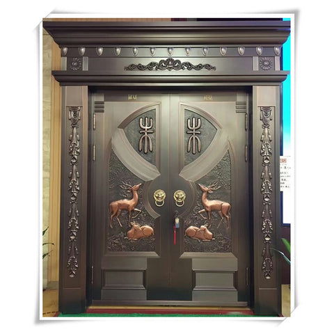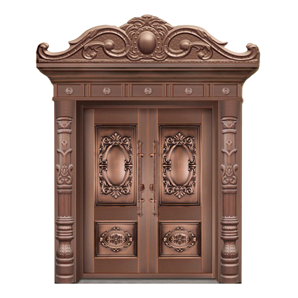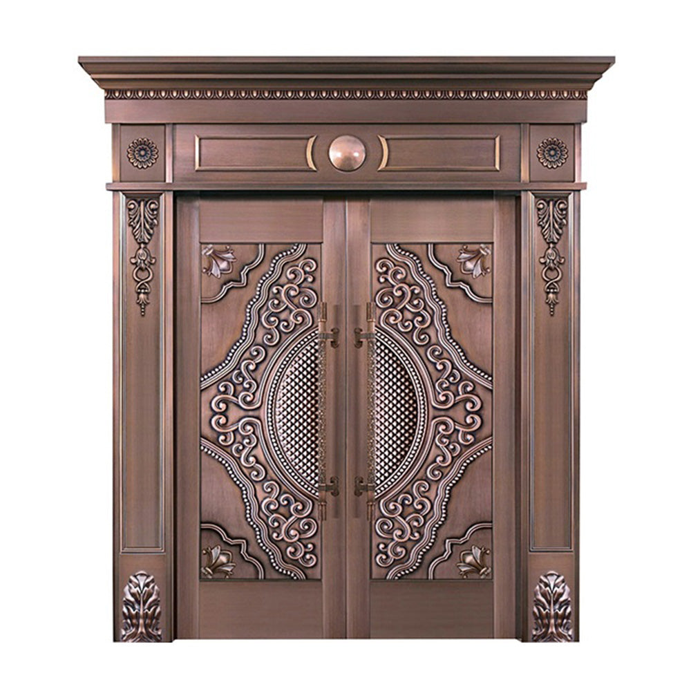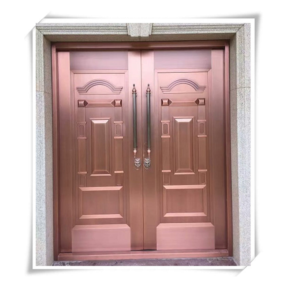 Detailed Images Product Description Product name Luxury double entry doors used exterior french doors for sale Imitated copper securety door Main materials high quality cold-rolled steel Infilling Honeycomb paper or rock wool or polyurethane or material Surface finished Copper Plating(Not painting,Scratch Resistance)with real Bronze or Brass that make the outward...