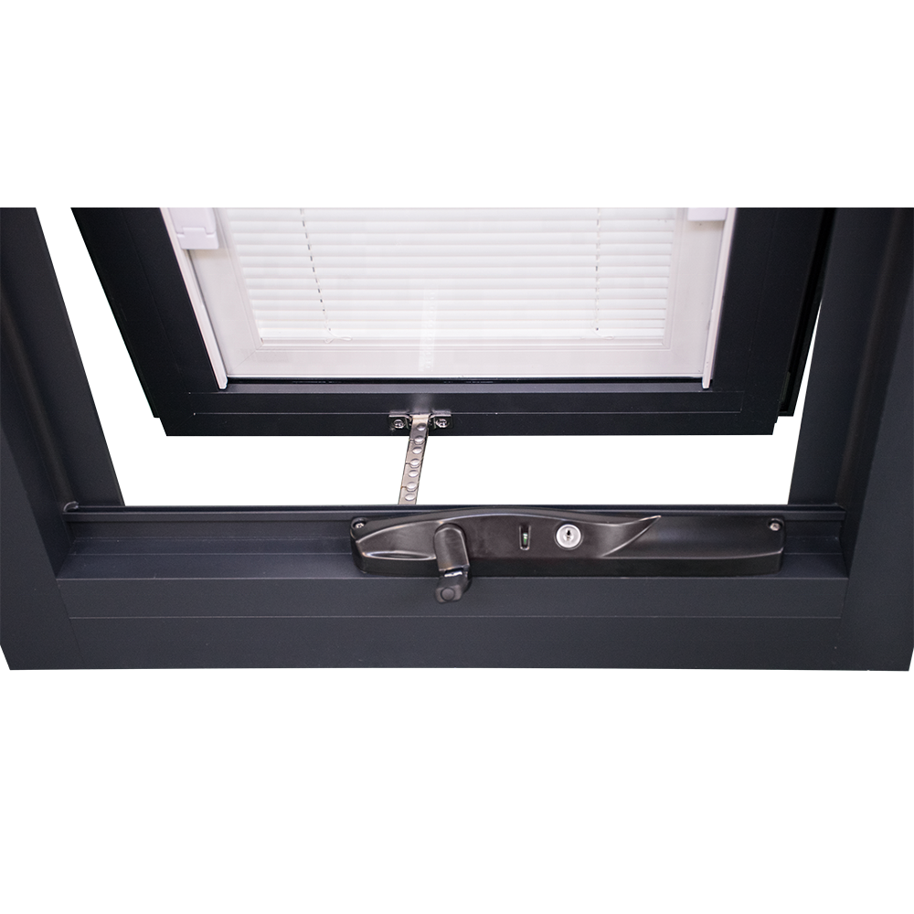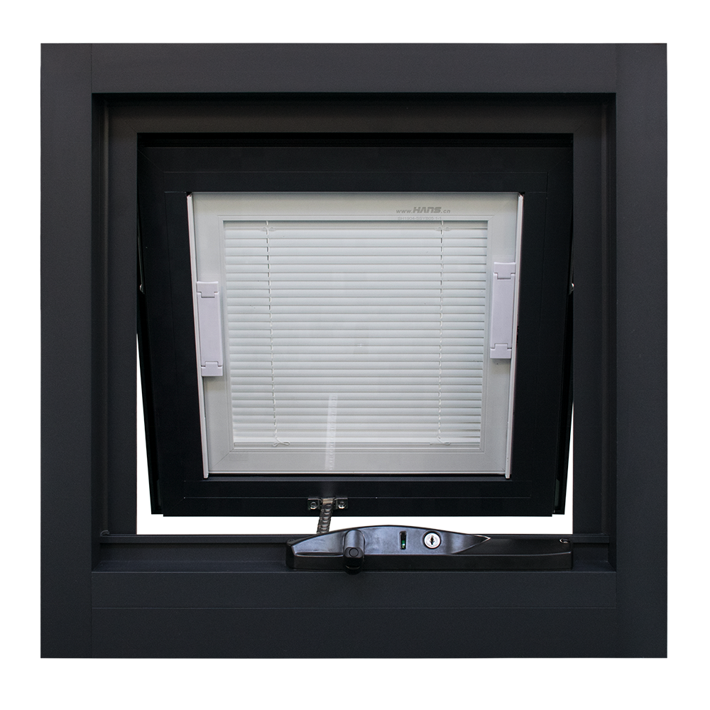 Luxury Villa House Aluminum awing vertical design latest window grill popular blinds inside windows     Aluminum Awing Window features:  *Grill Design and Blinds Inside  5mmClear+19A+5mmClear Double Tempered Glass *Fiberglass Screen and Stainless Mesh *Very popular style,Easy to open and Close.It can close restriction. *4500Pa Wind Peessure and Good Air Tightness *Chain...