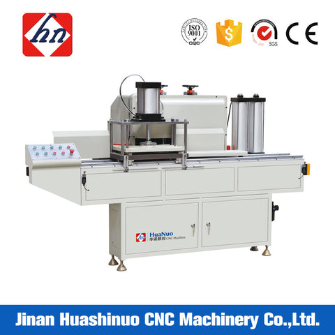 Auto end milling machine fabrication of aluminum windows and doors Main equipment features 1.Used for milling the aluminum mullion/transom reinforced mullion. 2.Large milling capacity, multi-pieces profile in one cycle. 3.Universal milling blades can be adjusted in up/down, left/right directions to fit for different processing requirement and ensure the efficient working....