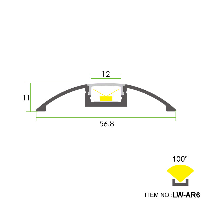 Guangzhou aluminum led channel low profile housing for 12mm pcb led strip light installation Product Description SPECIFICATION Brand Ledwide OEM &ODM YES Product Code LW-AR6 Dimension L2000*W56.8*H11mm Max strip width Max is 18mm IP Rating <19.2W/m Heat Stability Under 100°C Certification CE, ROHS, IK, IP68 UV Stability Ageing resistance...