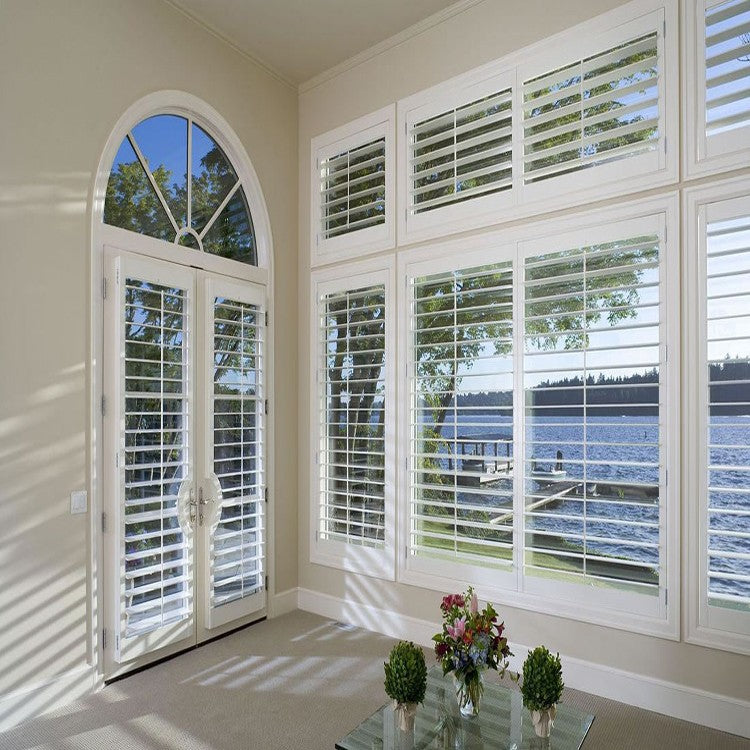 Product Description bi-fold shutters full height shutters bay window shutters Home decoration hot sale plantation shutters casement windows Frame L frame, Z frame Stile 35mm, 51mm, 57mm Shape Circle, oval, arch top, triangle, hexagon and so on Finish Unbeatable surface coating, waterproof, anti-scratch Features Abundant designs, easy to install, louver...