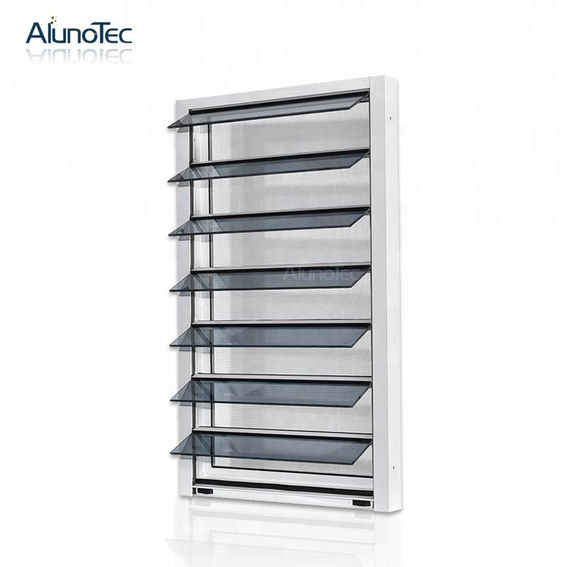Product Description Product Name Aluminum Jalousie/Louver/Shutter Window Switch Type Electric / Seven Shape Handle / Manual Glass Type 6mm Tempered Glass Max Width of Each Set: Within 1000mm Depth of Frame Upper 40mm, Down: 40mm, Left & Right: 60mm Frame Aluminum Thick of Profile 1.6mm Profile 6063-T5 Aluminium Alloy Locking...