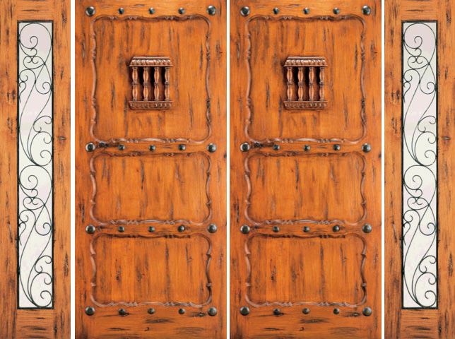 WDMA 100x80 Door (8ft4in by 6ft8in) Exterior Knotty Alder Double Door with Two Sidelights Entry 3-Panel Speakeasy [45 Attributes Table