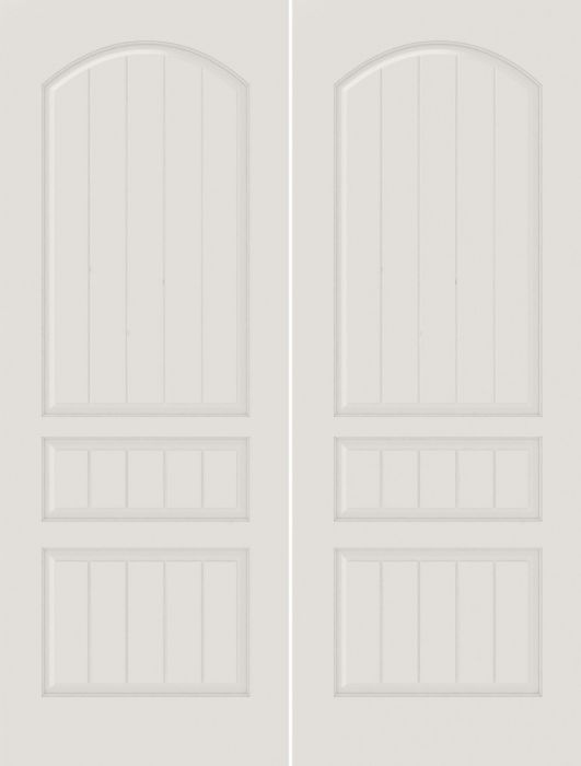 WDMA 20x80 Door (1ft8in by 6ft8in) Interior Barn Smooth SV3020 MDF PLANK/V-GROOVE 3 Panel Arch Panel Double Door