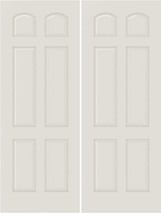 WDMA 20x80 Door (1ft8in by 6ft8in) Interior Bypass Smooth 6030 MDF 6 Panel Arch Panel Double Door