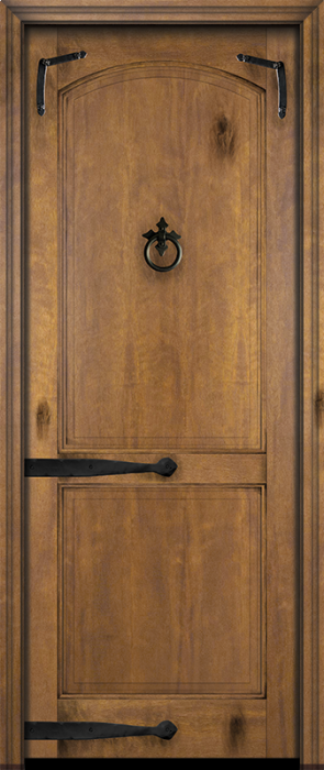 WDMA 34x78 Door (2ft10in by 6ft6in) Interior Swing Mahogany Arch Top 2 Panel Rustic-Old World Exterior or Single Door with Corner Straps / Straps
