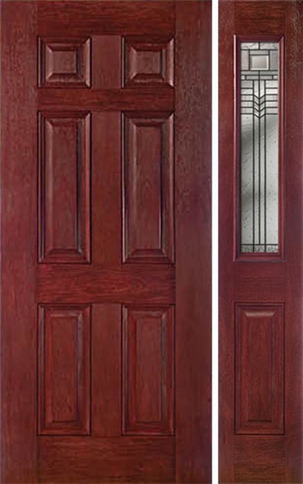 WDMA 42x80 Door (3ft6in by 6ft8in) Exterior Cherry Six Panel Single Entry Door Sidelight 1/2 Lite KP Glass