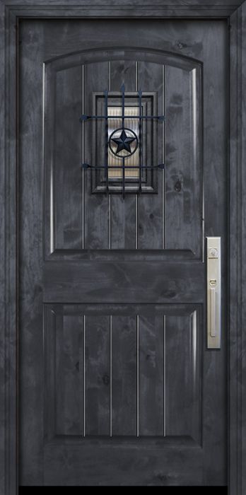 Please write your review of WDMA 42x80 Door (3ft6in by 6ft8in) Exterior Knotty Alder 42in x 80in Arch 2 Panel V-Grooved Estancia Alder Door with Speakeasy.