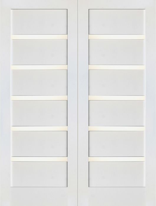 WDMA 48x80 Door (4ft by 6ft8in) Interior Swing Paint grade Slimlite Shaker White Double Door w/ Matte Glass SH-16