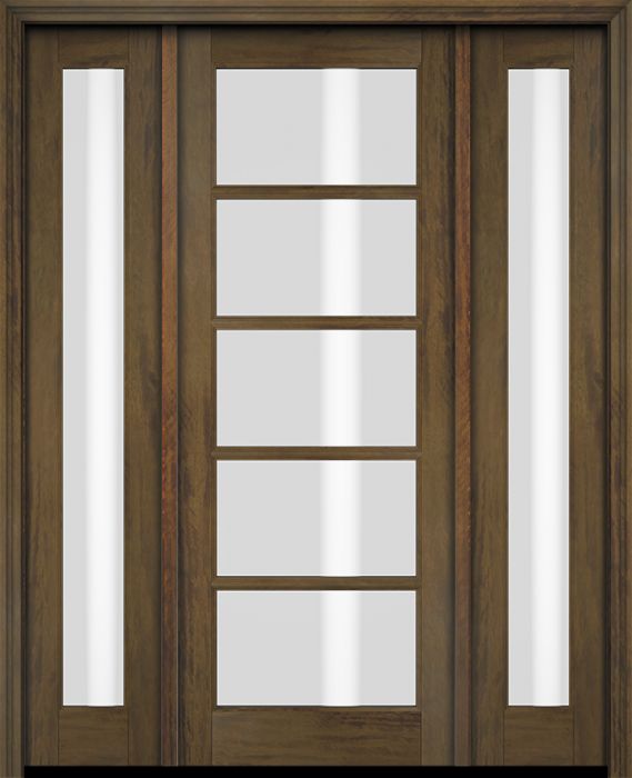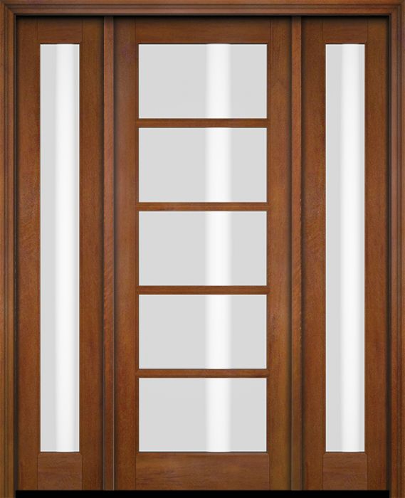 WDMA 52x96 Door (4ft4in by 8ft) Exterior Swing Mahogany 5 Lite TDL Single Entry Door Full Sidelights