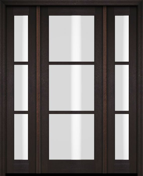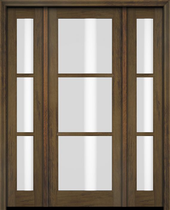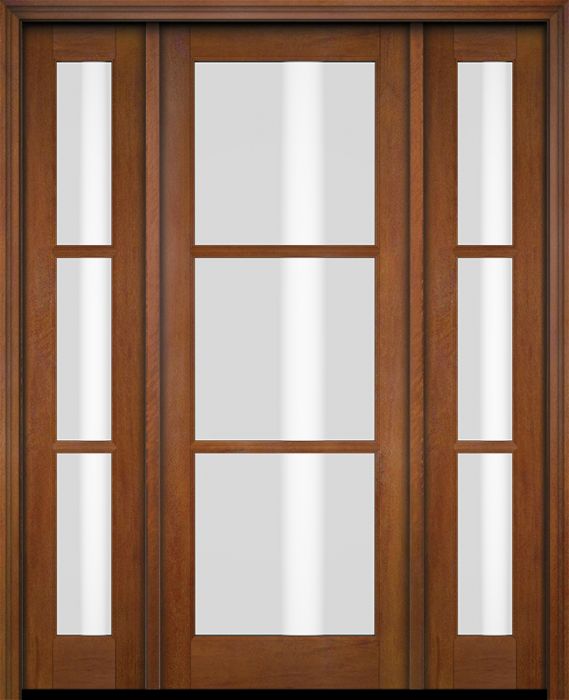 WDMA 52x96 Door (4ft4in by 8ft) Exterior Swing Mahogany 3 Lite TDL Single Entry Door Sidelights