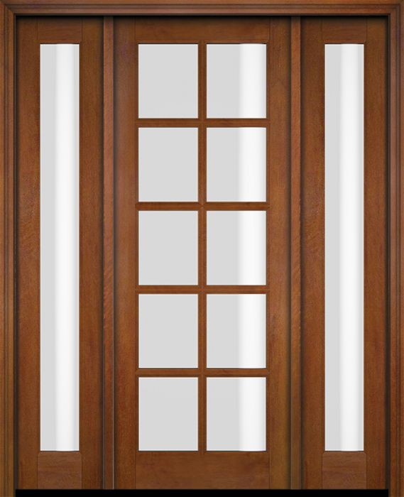 WDMA 52x96 Door (4ft4in by 8ft) Exterior Swing Mahogany 10 Lite TDL Single Entry Door Full Sidelights