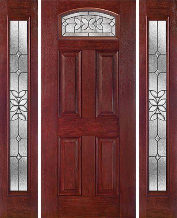 WDMA 54x80 Door (4ft6in by 6ft8in) Exterior Cherry Camber Top Single Entry Door Sidelights CD Glass