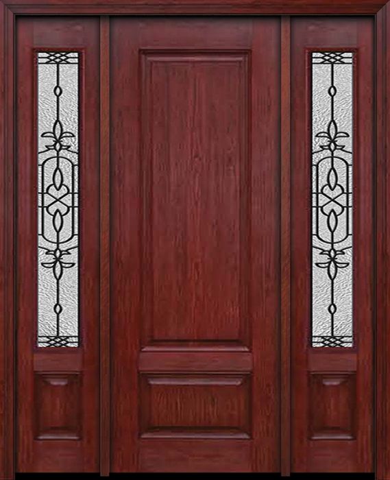 WDMA 54x96 Door (4ft6in by 8ft) Exterior Cherry 96in Two Panel Single Entry Door Sidelights Jacinto Glass