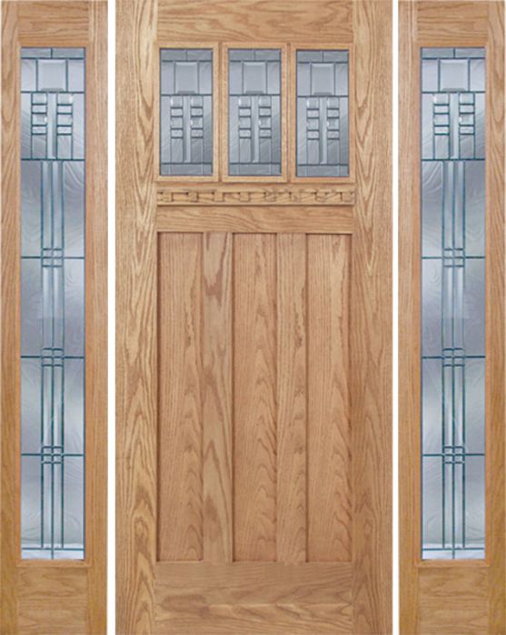 WDMA 60x80 Door (5ft by 6ft8in) Exterior Oak Barnsdale Single Door/2 Full-lite side w/ C Glass