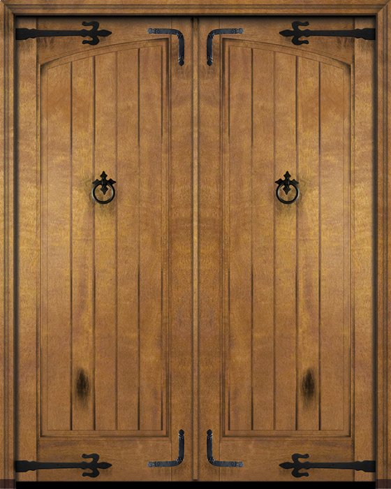 WDMA 60x96 Door (5ft by 8ft) Interior Swing Mahogany Arch Panel Rustic V-Grooved Plank Exterior or Double Door with Corner Straps / Straps Attributes Table