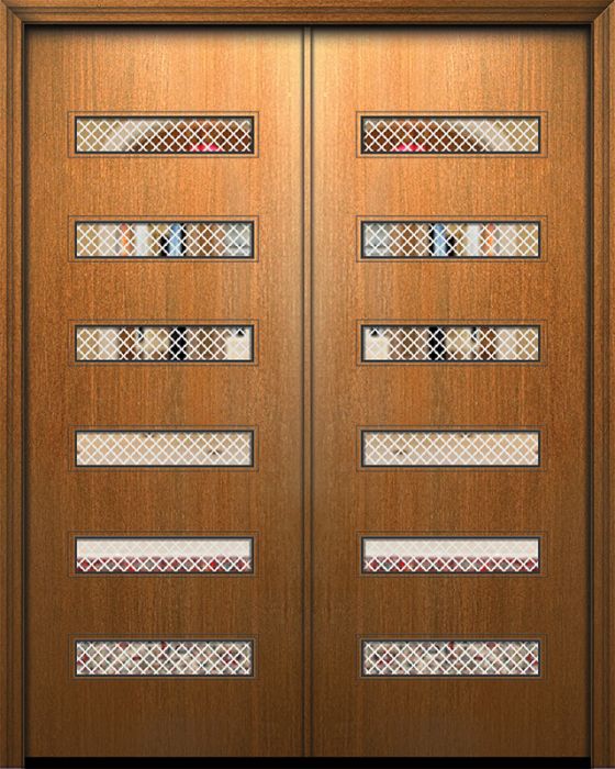 WDMA 64x96 Door (5ft4in by 8ft) Exterior Mahogany 96in Double Beverly Solid Contemporary Fiberglass Door w/Metal Grid Attributes Table