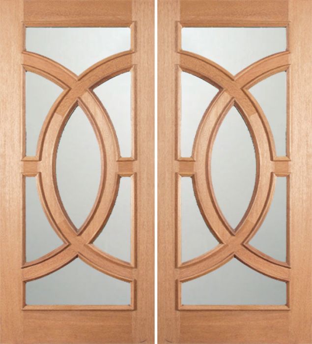 WDMA 72x96 Door (6ft by 8ft) Exterior Mahogany Crescendo Double Door w/ Sandblast Glass