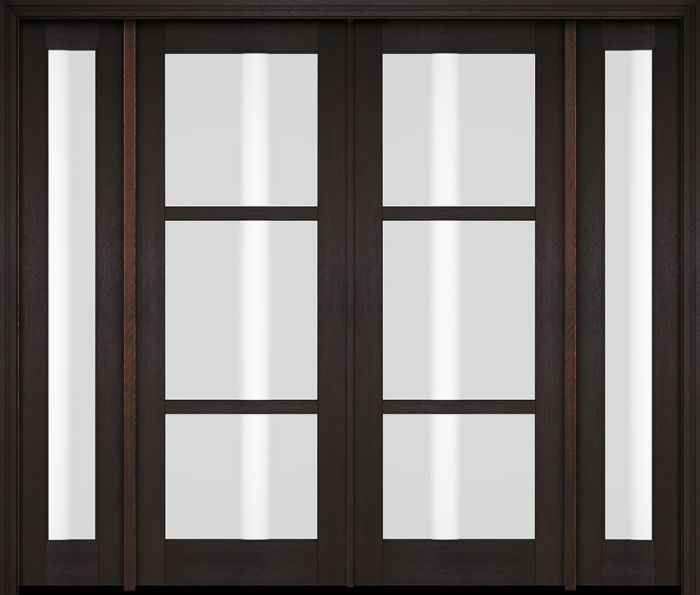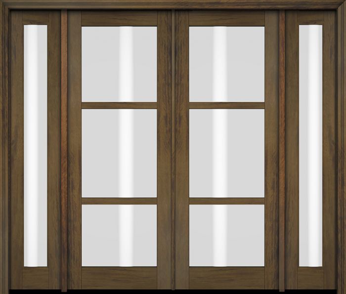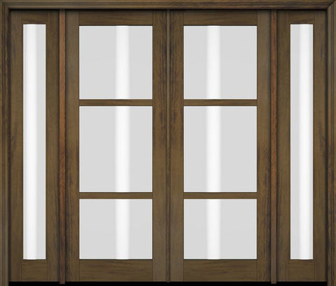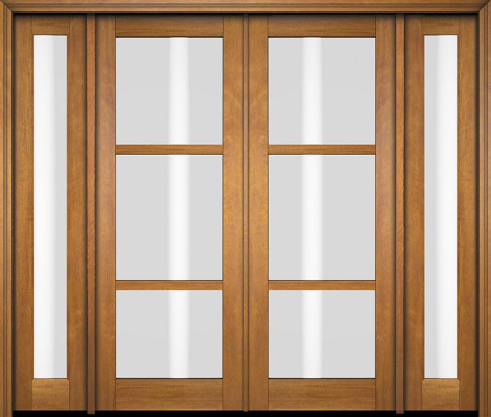 WDMA 76x80 Door (6ft4in by 6ft8in) Exterior Swing Mahogany 3 Lite Windermere Shaker Double Entry Door Sidelights