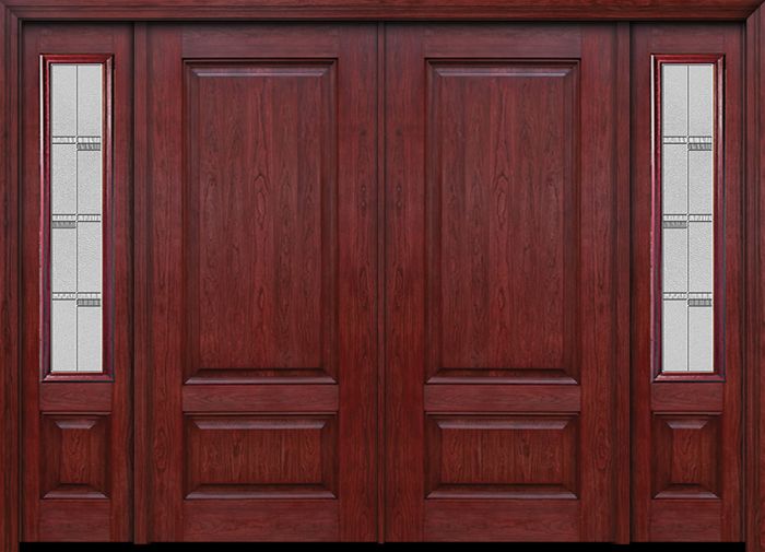 WDMA 84x80 Door (7ft by 6ft8in) Exterior Cherry Two Panel Double Entry Door Sidelights Crosswalk Glass Attributes Table