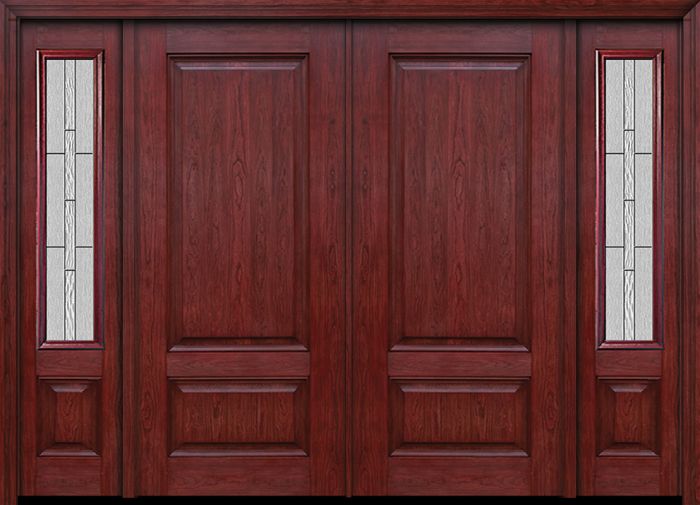 WDMA 84x80 Door (7ft by 6ft8in) Exterior Cherry Two Panel Double Entry Door Sidelights Waterside Glass