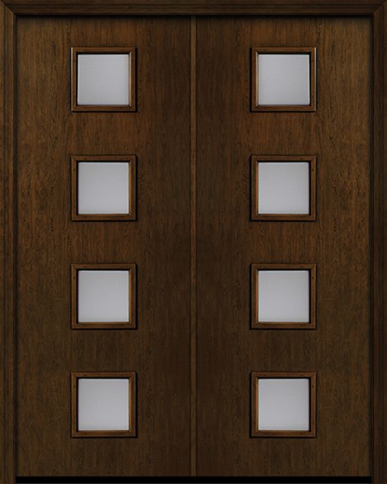 WDMA 84x96 Door (7ft by 8ft) Exterior Cherry 96in Contemporary Four Square Lite Double Fiberglass Entry Door