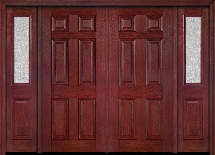 WDMA 88x80 Door (7ft4in by 6ft8in) Exterior Cherry Six Panel Double Entry Door Sidelights 1/2 Lite Rain Glass Attributes Table