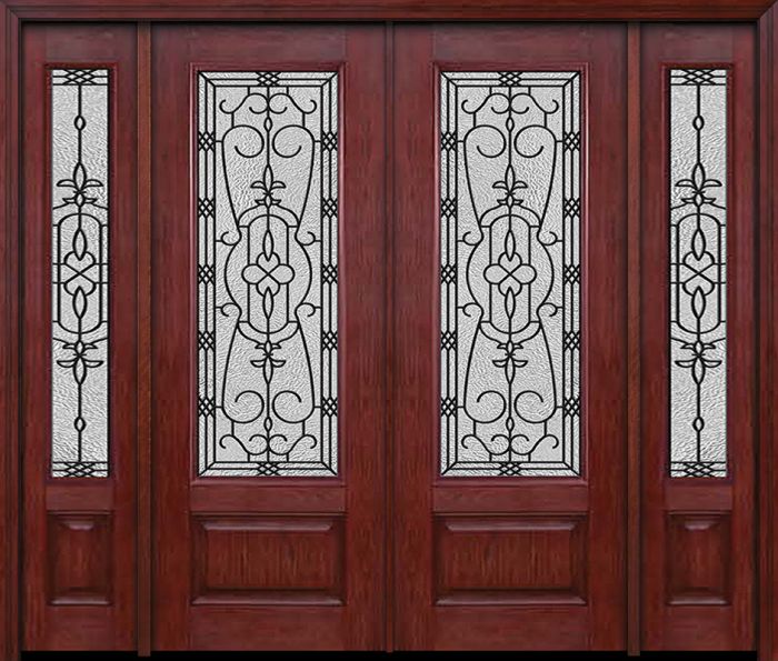 WDMA 88x96 Door (7ft4in by 8ft) Exterior Cherry 96in 3/4 Lite Double Entry Door Sidelights Jacinto Glass