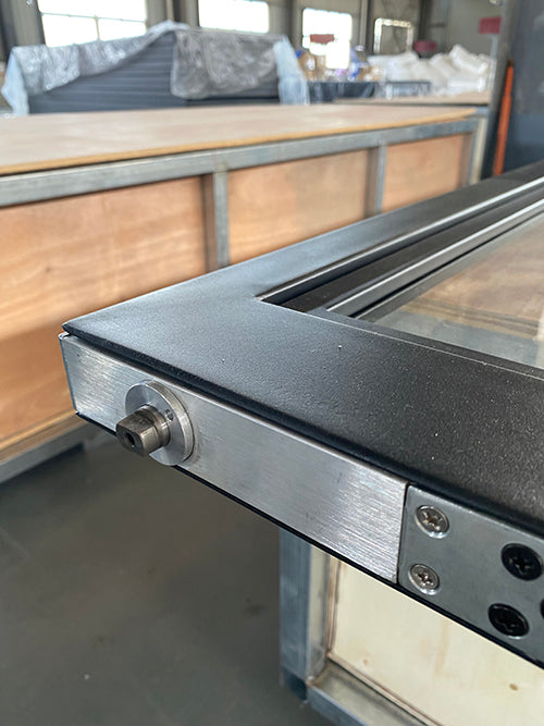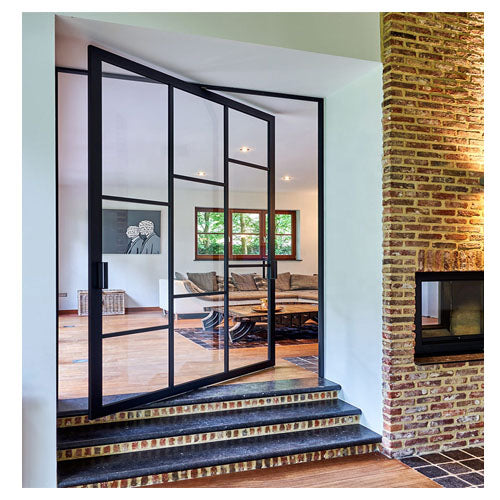 Please write your review of WDMA Iron gate design track pivot mild steel glass door.
